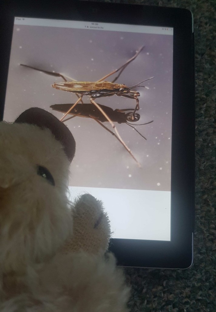 Auch der Wasserläufer, den ich schon oft bewunderte, weil er auf dem Wasser laufen kann, gehört zu den Wanzen!