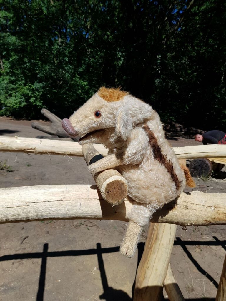 Da der Spielplatz Anfang Juli eröffnet werden soll, hielt ich die fleißigen Forstwirt*innen nicht mehr mit meinen Fragen auf, sondern bewunderte schon die ersten Spielmöglichkeiten. Na, das wird ein Spaß, wenn wieder alle Kinder den Waldspielplatz nutzen dürfen!