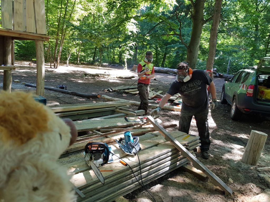 Deshalb sind sie so emsig: sie sägen viele Bretter, vermessen Balancierbalken und gestalten neue Spielgeräte.