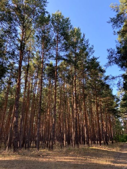Hier ist die Erklärung: Die kleine Buche wurde in einen Kiefernreinbestand gepflanzt. Es standen auf der Fläche also nur Nadelbäume. So wie auf diesem Bild.