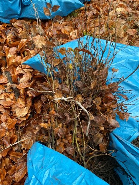 Jetzt haben wir die Pflanzen mit den bloßen Wurzeln auf unserer Pflanzfläche. Sie sind in Tüten gepackt, denn gerade die kleinen Wurzeln sind sehr empfindlich und dürfen nicht austrocknen.